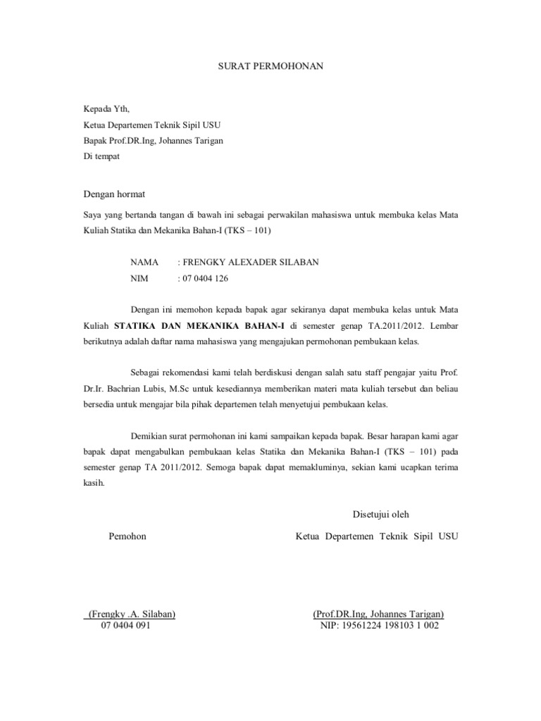 Surat Permohonan Pengajuan Mata Kuliah Pdf